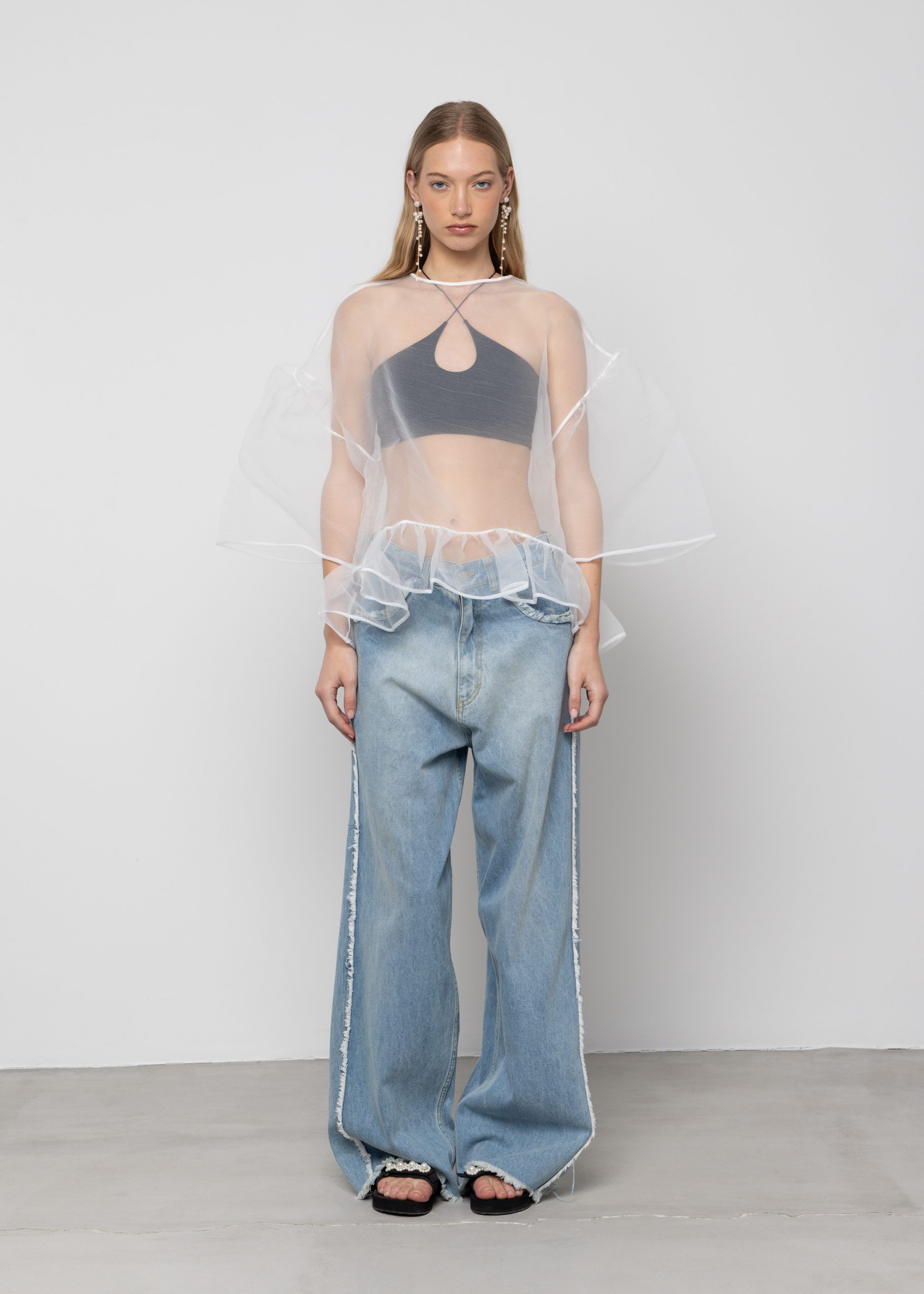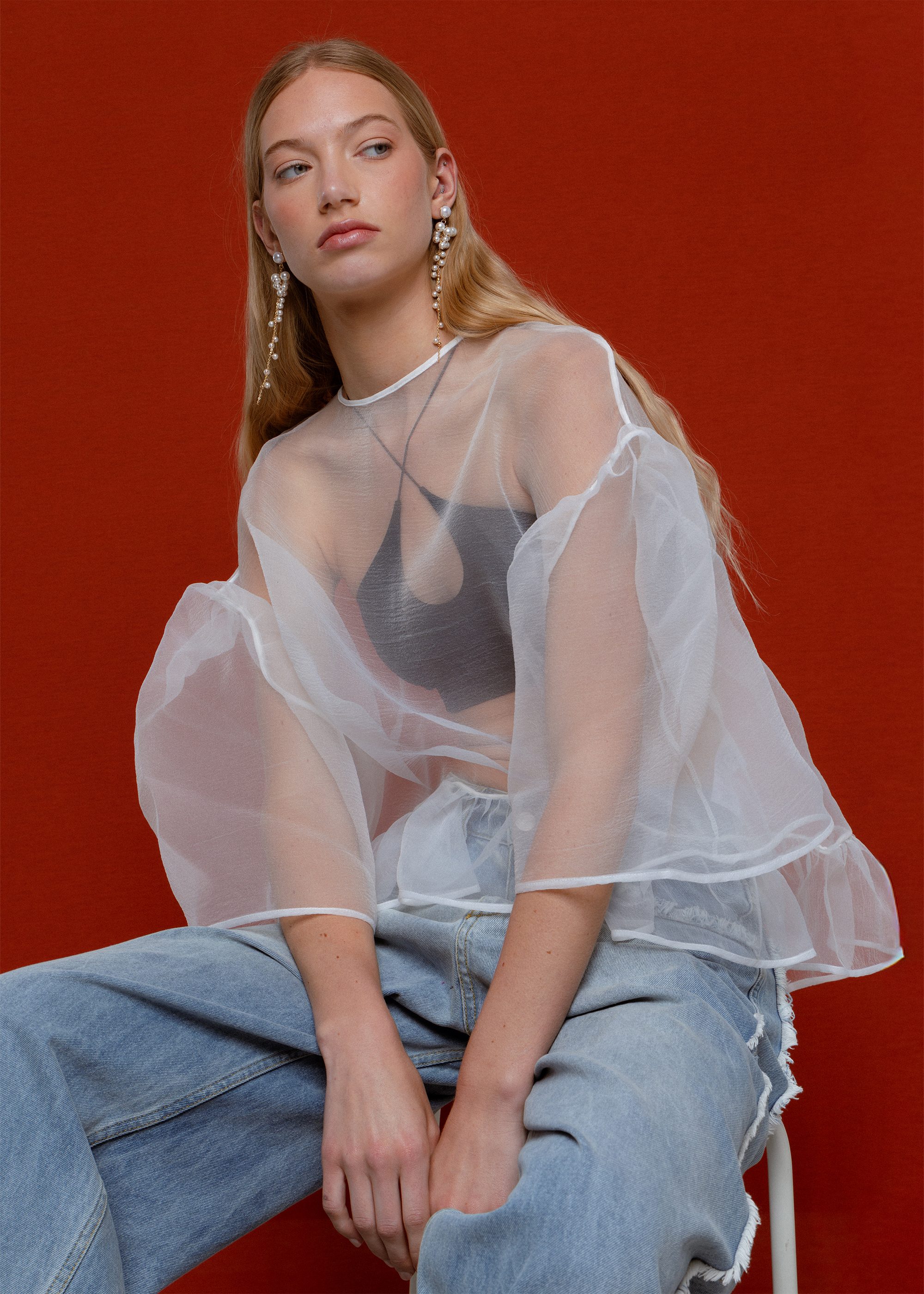 This blouse is made with crinkled organza, giving it a unique texture and a relaxed, airy feel. It features a sustainable and responsible design, with long sleeves and an oversized fit, making it perfect for any casual day. Whether layered over a t-shirt or tucked into high-waisted pants, you’ll love this fashionable off white blouse.