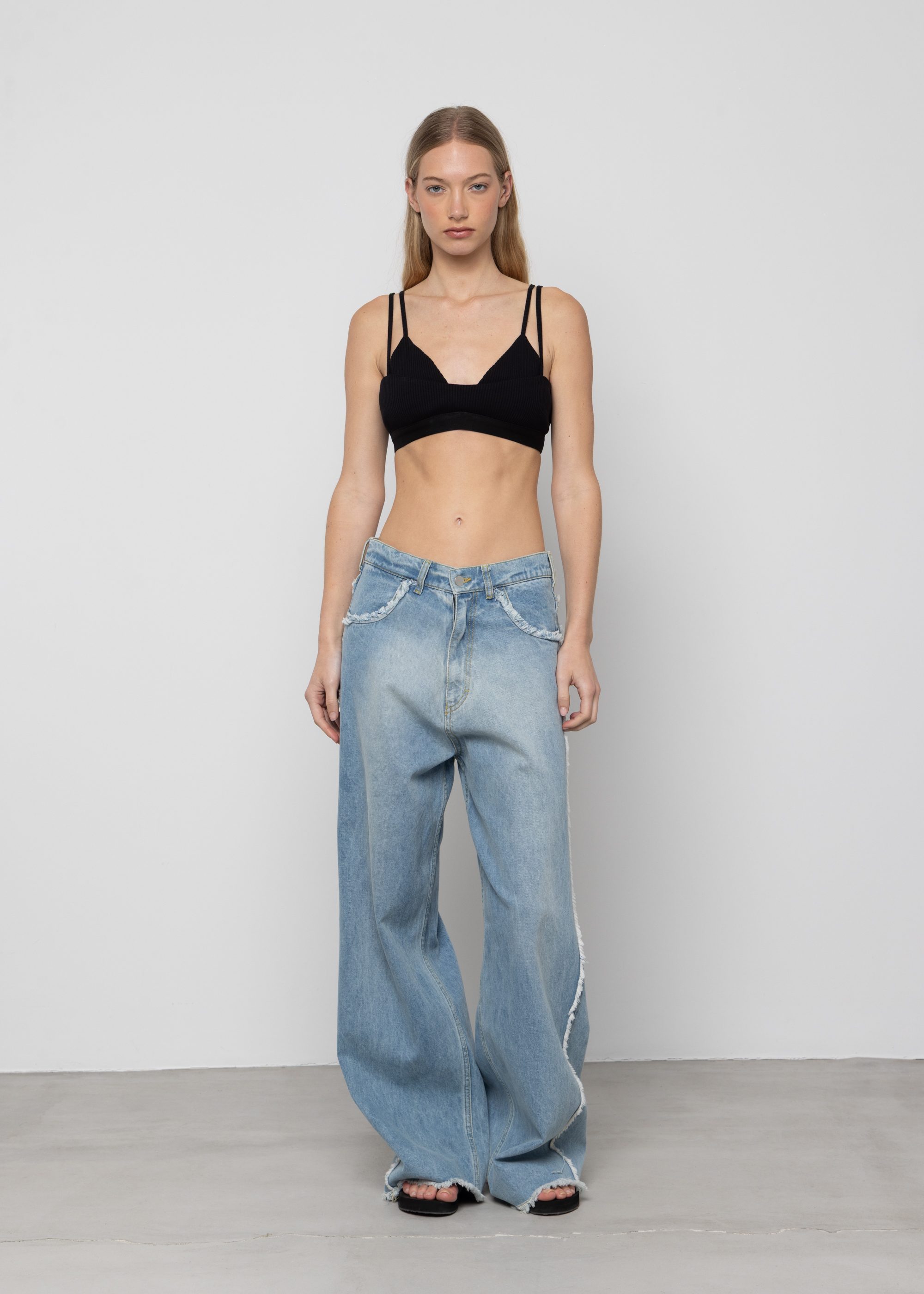 This double layered bralette is crafted in a stretchy ribbed organic cotton for support and comfort. The wide underbust band gives a secured fit and features double straps for design detail to give that layered look. Perfect match with our ribbed shorts and for your layering style.